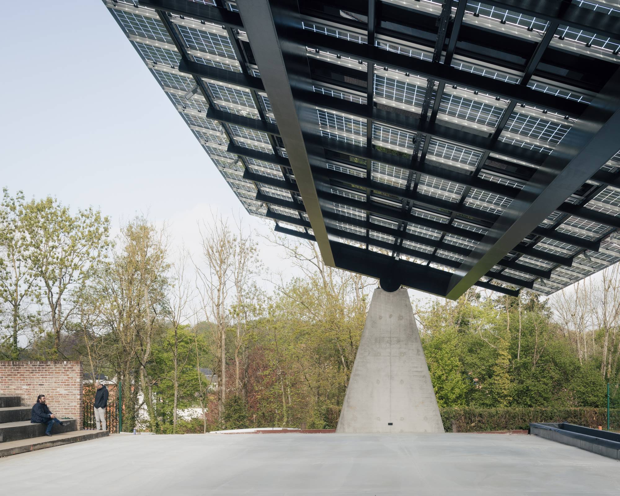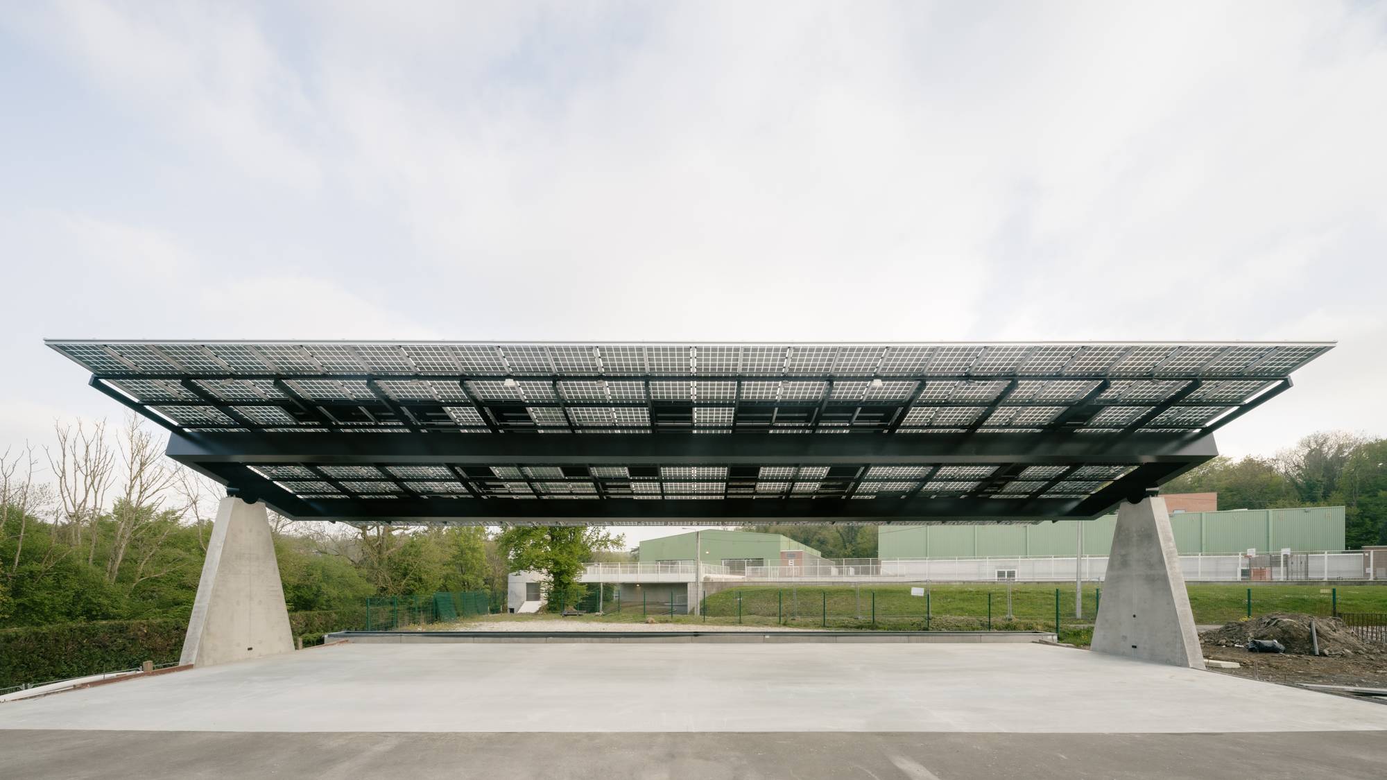 Construction à Loverval d'un auvent photovoltaîque de 300m² sur le site du centre sportif ADEPS La Ferme du Château.